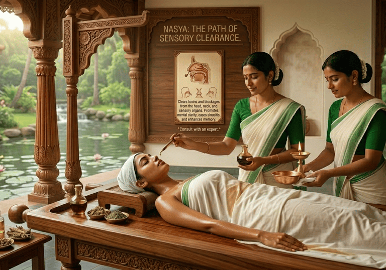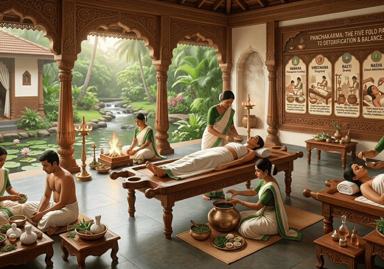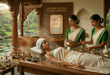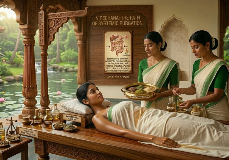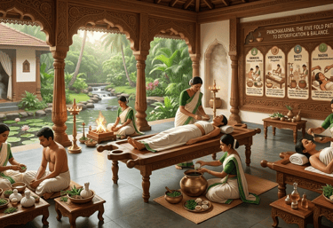 Comprehensive detoxification suite including five cleansing actions to eliminate toxins and balance doshas.
