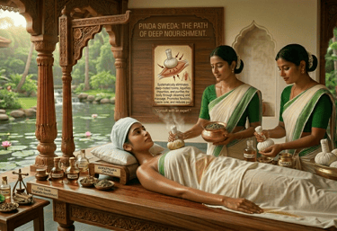 Warm herbal oil full-body massage customized to your dosha for nourishment and circulation.